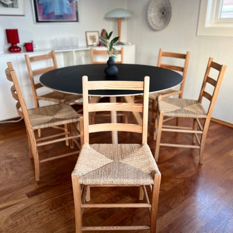 Spisestol, kjøkkenstol, flettesete, trestol