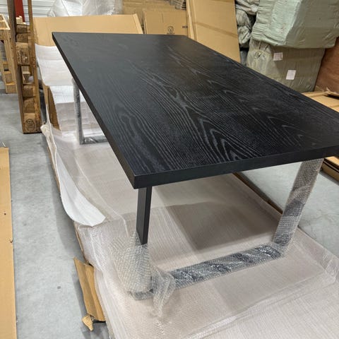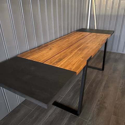 Spisegruppe med 5 stoler. Bordet kan enkelt monteres til *rundt* eller *forlenges*. Bruksmerker.