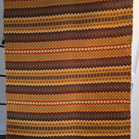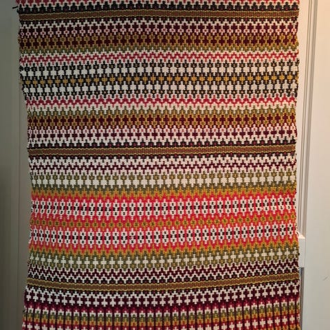 Jeg selger mitt store vakre håndvevde åkle fra Hardanger. Jeg fikk det i gave for ca. 50 år siden. Når det er vevd vet jeg ikke,men 50 år eller eldre er det. Utført i klassiske jordfarger. Størrelse : B. 126 cm. H. 204 cmDet er på alle måter helt og i orden. Usikker på hva som er riktig pris så er mottagelig for bud.
