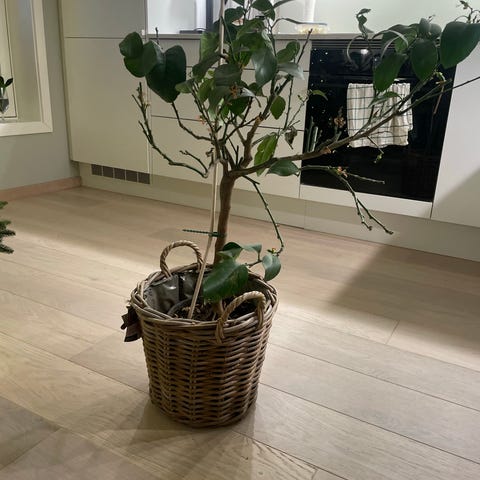 Sitrontre i potte selges. Har blomstret og nå mistet en del blader men har friske skudd og ser ut til å vokse fint! Instruks følger med, det gjør også potte. Må hentes!