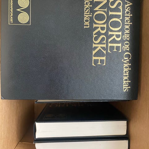 Aschehoug og Gyldendals Store Norske leksikon, selges billig. Består av hele serien, 14 bøker. Flotte bøker, noen av de har ikke vert i bruk. Gjør seg godt i bokhylla.