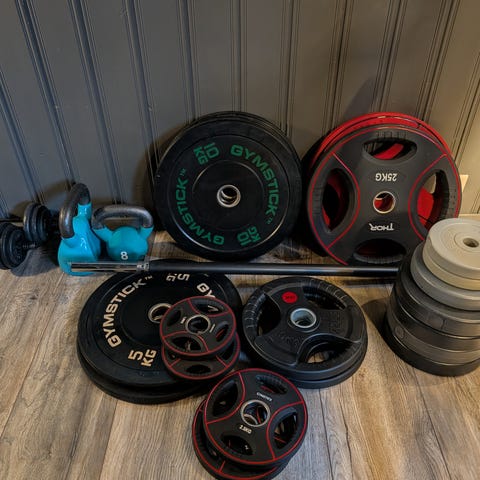 Rydder plass og selger en solid bunke treningsutstyr til 25mm stenger/hantler. Her er det nok jern til å gjøre både biceps og samvittighet tyngre. 😄