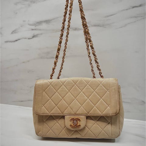Vintage Chanel Single Flap produksjonsperioden 1989–1991. Autentisk, og i meget pen stand.