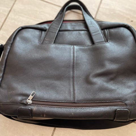 Lite brukt reiseveske med mange praktiske detaljer. Polstret lomme for pc inntil 14,1". Et par små merker på kunstskinnet på toppen (se bilde), ellers som ny. Ny pris 1499 i 2017.
