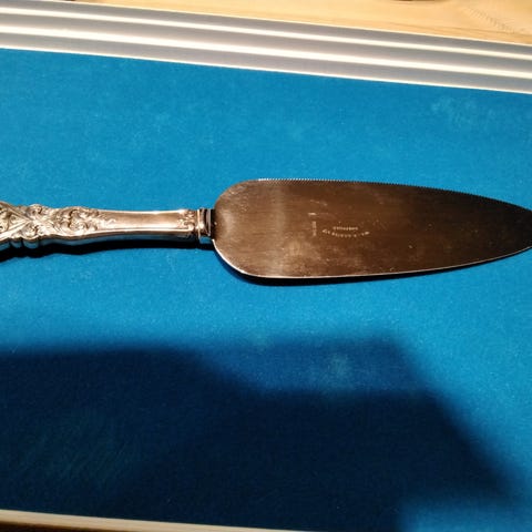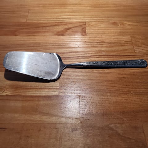 Selger en pai-spade / kake-spade i mønster Lilje. Den er kun brukt 2-3 ganger. Original eske medfølger