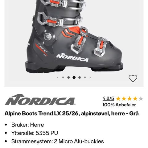 Nordica GPX 100 alpinstøvel mondo 28.5 (str 44). Kvalitetsstøvel som fortsatt har mange sesonger igjen.