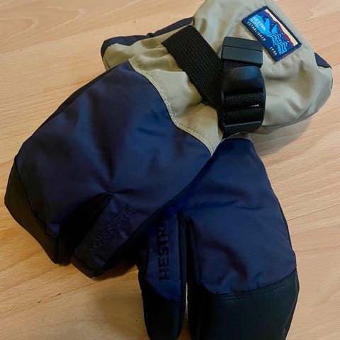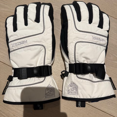 Hestra damehansker i størrelse 7. Hanskene er svarte, har skinn inni hånden og har detaljer som spenne og pelskant. Pent brukt.