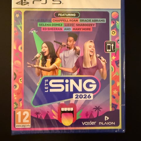 Plaion Let's Sing 2026 Playstation 5 spill. Inkluderer to mikrofoner for sang. Passer for brukere fra 12 år og oppover.