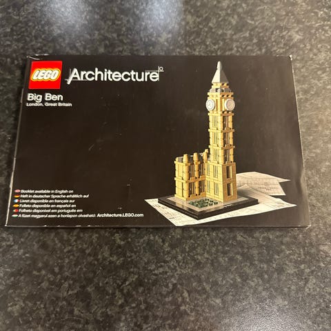 LEGO Notre Dame modell med detaljerte strukturer. Selges delvis demontert, med bruksanvisning.