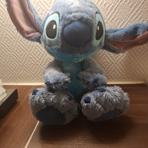Stor Disney Stitch kosedyr i str. 50 cm. Mini her fikk dobbelt opp til jul, og det var dessverre ikke med noe byttelapp. Selges derfor her, så en annen stitch-fan kan få glede av den 🫶