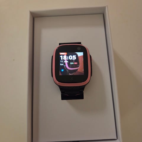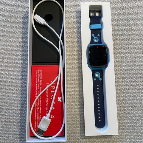 Xplora X6 Play så vidt vært brukt fra juli-oktober. Skjermen er knust, men kan fint brukes med den svarte beskyttelseskjemen på.