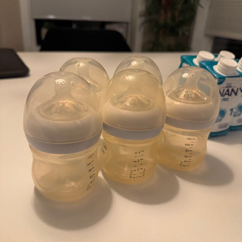Den ene flasken har den nye ventilen til Philips Avent flaskene.