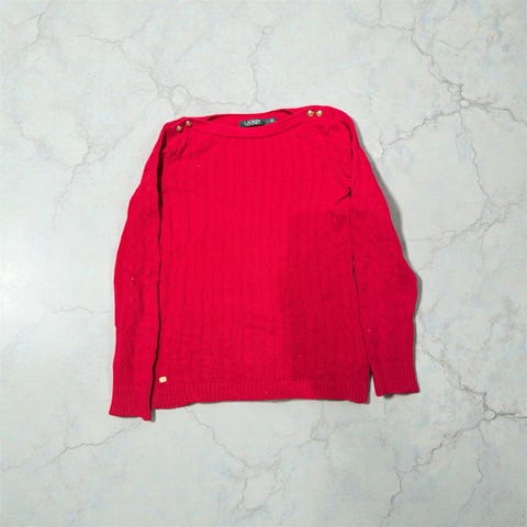 Selger en svart genser i størrelse L. Den er brukt, men i god stand, uten flekker eller hull. Det er et lite RL merke nederst på genseren, og fire knapper på siden som gir en fin detalj. Genseren er myk og behagelig å bruke, og passer godt til hverdags.