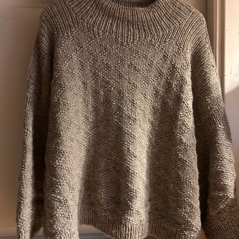 Håndstrikket genser selges da den ikke blir brukt. Ubrukt, strikket i Rauma Fivel av meg. Border strikket med Latvisk flette.