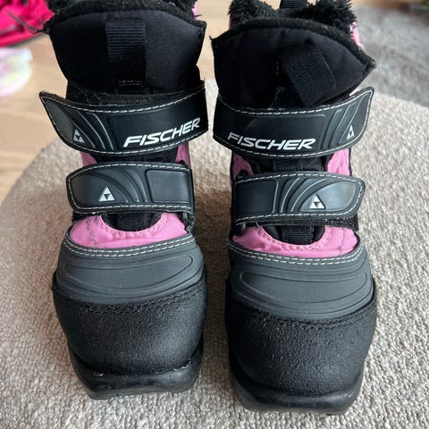 Pent brukte fischer skisko til barn, brukt få ganger av to forskjellige jenter. Det er en noe smal modell, så den har best passform til normal/smal fot (vår ene datter med veldig bred fot kan ikke bruke de).