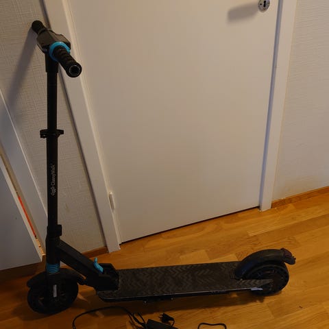 Elsparkesykkelen er brukt en halv sesong av en voksen. Ble utsatt for litt regn første sommeren.