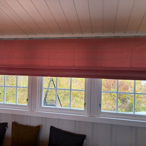 Disse gardinene er bare brukt noen få måneder og er helt flotte og fine, om du legger opp den ujevne kanten nede. De er 170 + cm lange i dag. Lystette. Ikke misfarget av solen. Se på vaskelappen, så ser du at gardinene er som nye, bortsett fra at du må legge de opp nede.