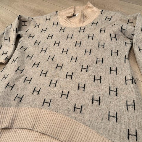 HÉST Isa sweater i flerfarget design, størrelse L. Genseren er laget av ullmateriale og har en unik flerfarget mønster. Passer for kvinner.Nydelig kvalitet.