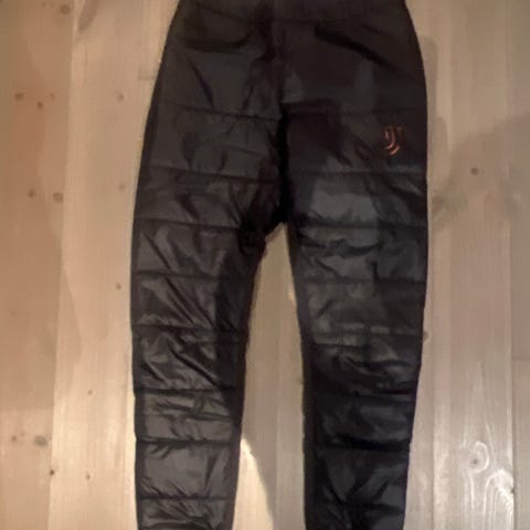 Buksen har quiltede detaljer og er designet for aktivitet på kaldere dager. Den har justerbare seler og glidelås ved bena for tilpasning. Materialet er tilpasset aktivitet og komfort under trening.