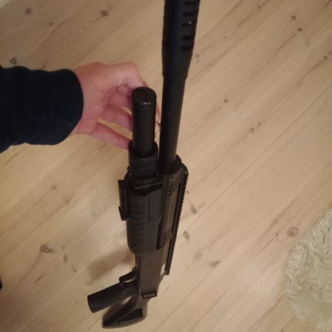 - Består av to deler, begge kan skytes med + sikte og 6 skudds magasin. Fremderste delen skyter når man tar ladegrep.