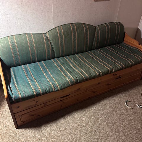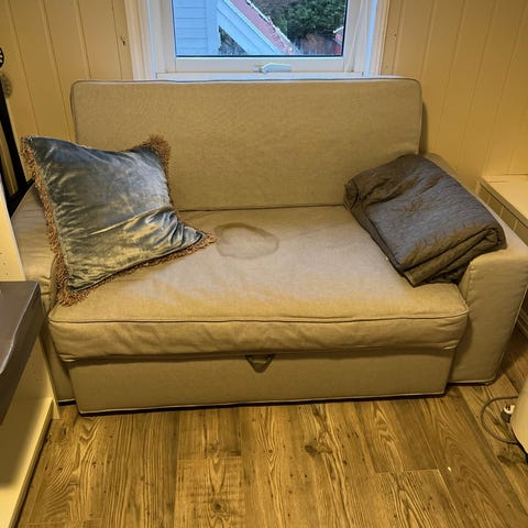 Praktisk sovesofa med oppbevaringsrom for sengeklær.