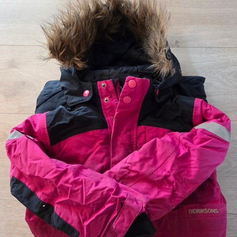 Didiriksons vinterdress str. 100 gis bort mot henting. Kan forlenges noe. Hull på beinet er lappet. Se bilde.