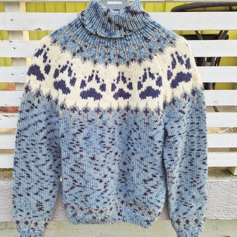Strikket i alafosslopi garn, derav veldig god og varm!