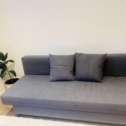 Fin og lite brukt Ikea Vilasund sovesofa med sjeselong og Kivik fotskammel. Sofaen ble kjøpt i 2019 og er ikke i produksjon lengre. Farge er mørk blå