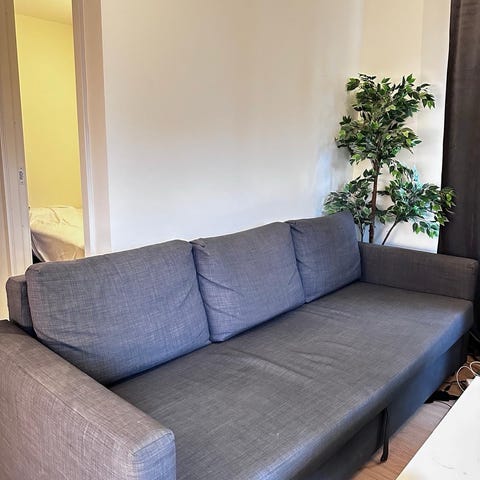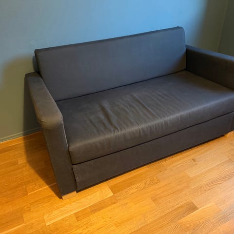 Sofaen står i kjelleren og kjøper må ha med bærehjelp og stor bil. Den må muligens delvis demonteres om den skal fås ut.
