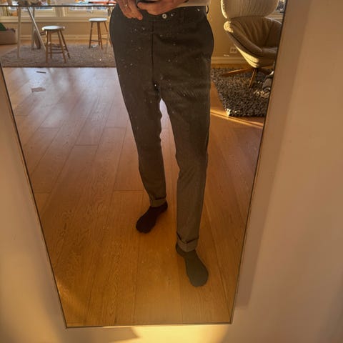 Corneliani er et luksusmerke fra Mantova i Italia, kjent for sine håndsydde detaljer og eksklusive tekstiler. Denne er laget i extra fine virgin wool som er mer slitesterk enn Super 100 kvalitetene.