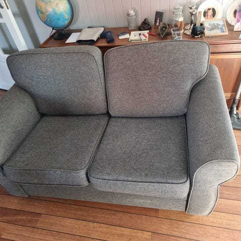 Ryggen kan legges helt ned slik at den kan benyttes som sovesofa.