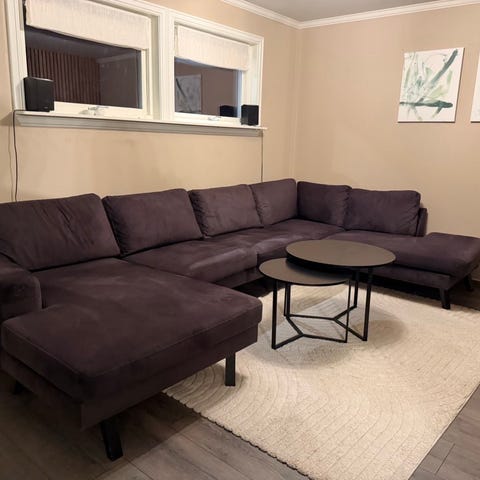 Boston sofa selges til fordel for ny, noen små hull i noen puter som vist på bilde, pluss ødelagt glidelås i en ryggpute og en sittepute, sikkert enkelt å fikse for rett person, skal bort så kom gjerne med bud!