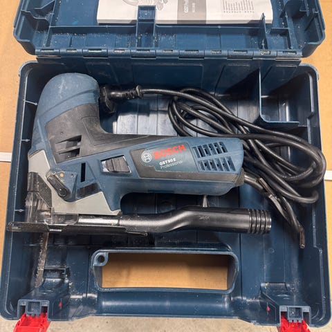 Selger en Bosch GST 90 E Professional stikksag med koffert. Dette er en robust og pålitelig proffmodell med god kraft og presisjon, godt egnet til både tre og andre materialer.