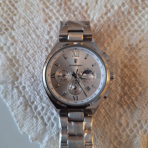 Apple smartklokke for unisex. Inkluderer ladekabel. Klokken har en rektangulær skjerm og en rem i skinnfarge. Passer for daglig bruk og ulike aktiviteter. Har ingen synlige bruksmerker eller riper i skjerm. Fungerer helt perfekt!
