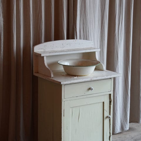 Vaskeskap i tre med en skuff og et skap. Vaskeskap har et enkelt design med en overhylle og en rund knapp på skuffen og skapdøren. Passer som en kommode til oppbevaring i hjemmet.