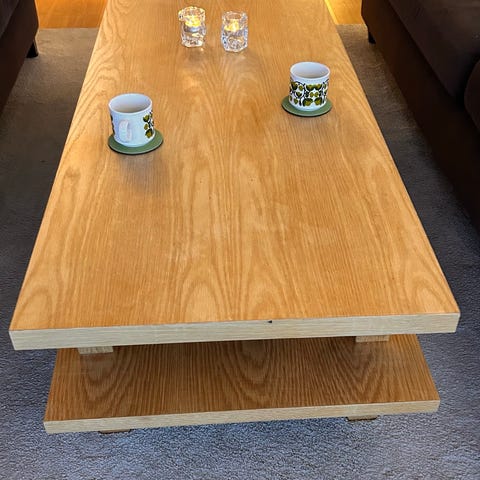 Selger dette flotte sofabordet fra Bolia. Hvitpigmentert oljet eik, Massiv. Veldig pent brukt, ingen synlige riper.