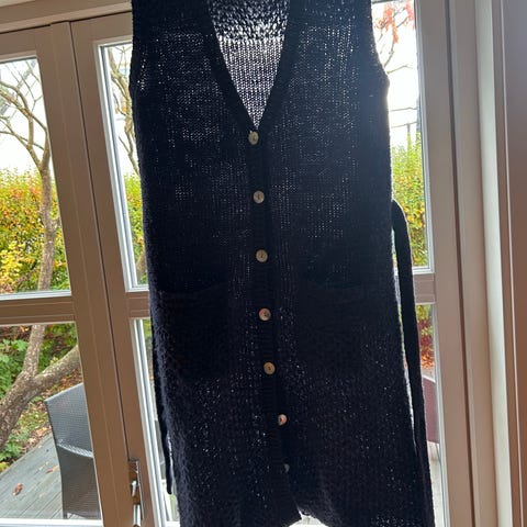 Noa Noa ullvest i svart farge, størrelse XS. Vesten er laget av 100% ull. Den er ermeløs og har knappelukking foran.