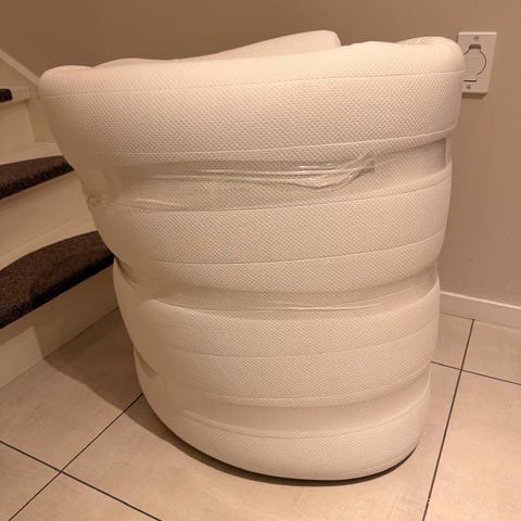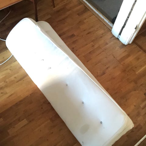 Vi bytter til ny overmadrass for å få en som er litt fastere.