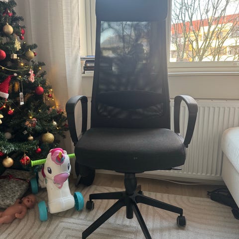 2 Abildholt antrasittgrå kontorstoler fra Jysk ble svært lite brukt (maks. en håndfull ganger) og selges derfor videre.