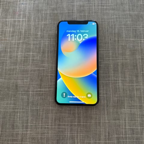 Apple iPhone 12 Pro mobiltelefon med 128 GB lagringskapasitet. Enheten har en skjerm som vises i bildene og et bakdeksel i blå farge.