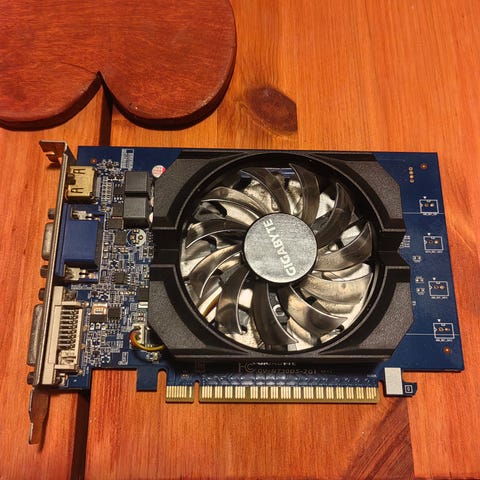 Gigabyte GV-R928XOC-3GD-B skjermkort med tre vifter for kjøling. Kortet har flere videoutganger inkludert DisplayPort, HDMI og DVI. Tilkobles via PCI Express-grensesnitt.