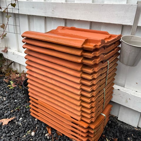 Svart takstein egnet for taktekking. Produktet er holdbart og lett, designet for enkel montering på takflater. Ca 50 heller og nokre mønesteiner. God bort mot henting.
