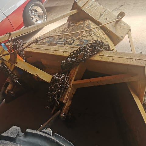 Lite brukt bilfrakter med triangelfeste for traktor selges. Kjettinger for feste av hjul medfølger.