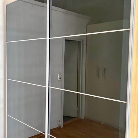 Selger skyvedør til PAX grunnet overgang til normale dører. Må hentes og bæres ut av kjøper. Det er heis i bygget. Nypris er 4000 kr på Ikea: https://www.ikea.com/no/no/p/auli-skyvedorer-par-speil-s99560281/#content