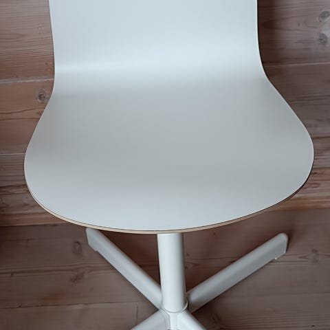 IKEA barnestol i gul farge med justerbar høyde og hvit metallramme. Stolen har et ergonomisk design tilpasset barn.