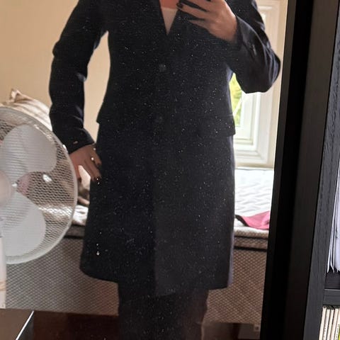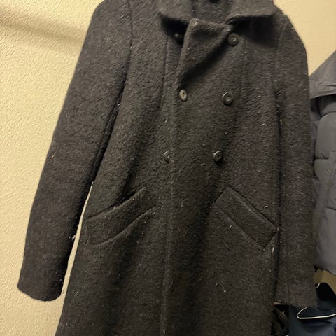 Monki kåpe i størrelse XS for kvinner. Kåpen er laget av ull og polyester og er grå og rutete.