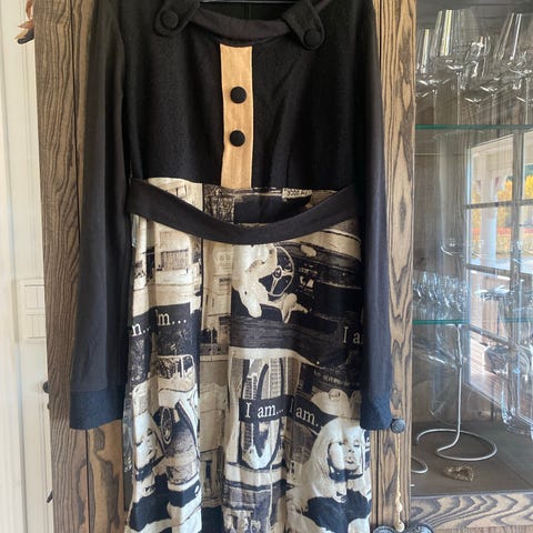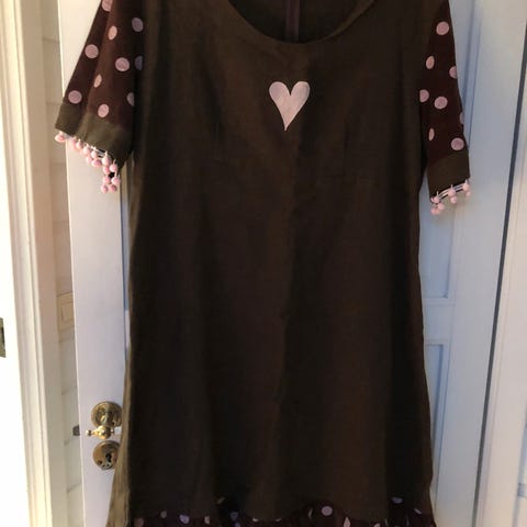 Stilig og komfortabel kjole fra Siri S. i 100 % lin. Klassisk sort farge med dekorativ kant nederst og fine detaljer. Løs og flatterende passform med korte, vide ermer. Behagelig og luftig