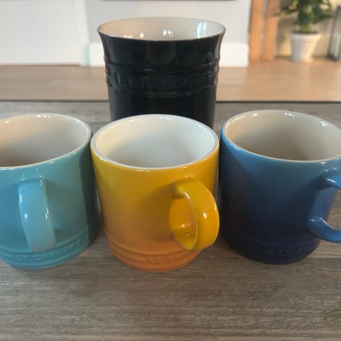 Rosa krus fra Le creuset. Helt nytt. Er secondchoix, så har en liten uregelmessighet på ene siden, se bilde nr. 2