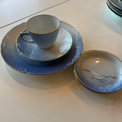 Elegant og klassisk porselensfigur fra Royal Copenhagen, motiv Madonna med barn, modell nr. 19. Figuren har et rolig og tidløst uttrykk, med myke blå- og hvittoner som er typisk for Royal Copenhagen.