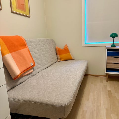 Praktisk sovesofa fra IKEA. Perfekt om man får uventet overnattingsbesøk på nyttårsaften.